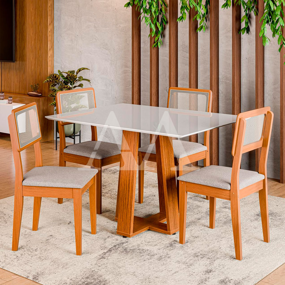 CJ MESA 4C DOBUE MONTANA 120X90 C/VIDRO CINAMOMO/BRANCO OFF/NEVOA BOUCLE