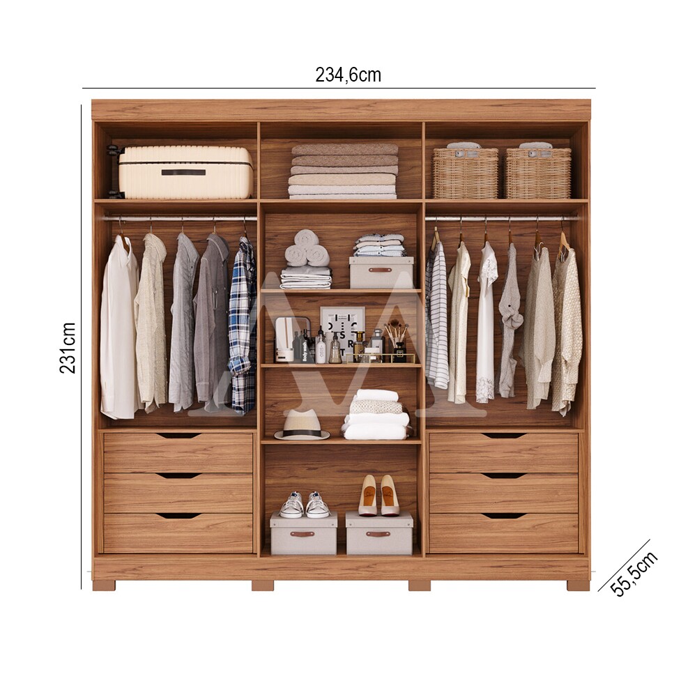 Adicione charme no seu quarto com o roupeiro de seis portas da Cecilia.